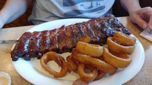 Great ribs! Always great baked sweet and regular potatoes. Ice tea onspot for flavor.