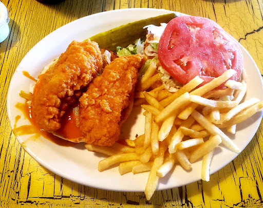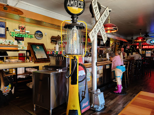 This restaurant offers a variety of food with interesting twists in flairs. There are great salads, wraps, burgers, etc. I really like the fish and chips when I chose to order fried food. The batter is light and not greasy. The fish is cod. They also offer a fish of the day selection at market price. The fish tacos are delicious. I even eat the cole slaw though I am not a fan of it. The decor is old Leesburg, Florida photos, license plates, eclectic. They have a bar but I havent sat in that area. Dress is whatever you choose as long as you have on a shirt and shoes as required by the health department, I think. There is a lunch menu. They stay busy so plan a late lunch ir early dinner