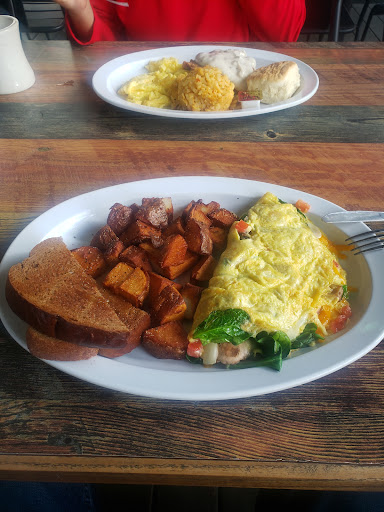 Ok so we went there with a 7 top plus a child , and we were sat in less than thirty minutes on a Saturday at 10:30 am . The first sign of trouble was when they came to get us and they sat us outside when we told them inside only . We went ahead and sat outside because we were hungry. In a strange move, our server Barbara waited about 5 min to greet us and brought 3 waters to the table and said here is an assortment of drinks... Only one person wanted a water so it was a waste of time and as someone who has worked in the service industry , I honestly hadnt seen someone do that before . So we all ordered our food and here is the nightmare. One by one , a dish came every 5 min or so. I got the fish hawk , which was pancakes, eggs, bacon, grits, and potatoes. I got my pancakes first... About 4 min later along came my eggs and potatoes... My grits never came until I had to remind my server over 4 times that I was missing them . The same thing happened to my wife and 3 others at the table . Other reviews have stated similar incidents with this place and for some reason they cant seem to handle the amount of people they serve . It was really annoying and ruined breakfast for us when the server has to keep asking us what we are missing... We saw you with a pen and paper, write these things down and get it right . The food was just ok. The potatoes had absolutely no seasoning of any kind on it and was lukewarm . The pancakes were ok but came on a plate that was smaller than the actual pancakes so I was baffled by that . The eggs were cooked over easy when we asked for over medium. I have a pet peeve when I go out because I was a server and have expectations for people that serve me . I had to wait at least 10 min for my drink to be refilled after I told her at least 2 times my drink was empty. Its something so simple and for some reason she couldnt handle it . I get it, they were busy and I have been there , but there is obviously no team work there , and not once did I see a manager or any sort of team work going on . To top it off , you have to go to the front to pay which is fine , and many diners make it seamless , but this place was ridiculous. There was no where to stand and the same small table is used as a hostess stand too so people are coming in , and youre trying to sign your tab but there is really nowhere to go. All in all this place has potential and I welcome a variety of breakfast spots but this place needs to really sit down and listen to its customers . They will fail because of this customer service issue. I wish them the best because I believe in small businesses but we will not be back for awhile.
