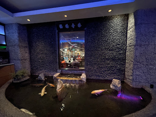First rate place for special occasions. Hibachi, for those that dont know, its a Japanese steakhouse in which they cook the food on a grill in front of you- similar to a Benihanas. There is a front, outside patio area, and also a bar. When you enter, the ambiance is dark, and cool. There is also a fairly good sized koi pond which your little ones (or you) can feed them pellets for a quarter. They are fat fish. We were fortunate enough to get the executive chef, Fuji to cook for us. He was astounding, energetic, and entertaining- flipping food, and accommodating with the precision of someone whos been doing it for years. Food was superb and seasoned to perfection. 6 course meals range from $22-30something, 8 course meals are a bit pricier. If there is a special celebration going on, be wary that the staff will show up with a mini taiko (Japanese drum) and bang off- my mother stated that she was getting palpatations from the thuds. All in all, an exceptional place for feasts and jubilation.