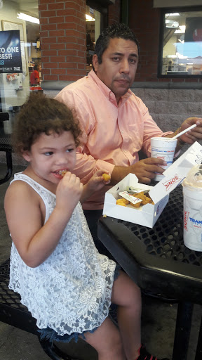 We stopped for lunch here about 2pm in the afternoon between my husbands doctors appointments. The food was hot and delicious. Our server was very friendly and even came back a bit later to see if we needed any more sauce or napkins. After our last appointment we went back for a Blast. It took a bit longer but when our server brought them out she explained she had fallen and dropped one of our drinks. She was very apologetic and still very friendly, although it looked like she may have fallen a bit hard. Definitely going back again.