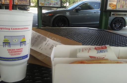 This is your typical Sonic fast food place. For myself, I dont care for Sonic food, and only go for the drinks. I had the frozen limeade here, and it was quite good. Service was polite, and fast given the crowd level, and the area is reasonably good. Note that the selection of drinks varies at different locations - this one only had pineapple in the "real fruit slushes" - but the menu here was still expansive and youre sure to find something youll like.