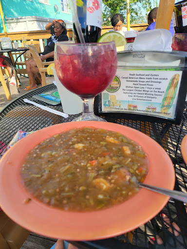 Great place! We visit every time we are in Florida. The staff is great especial Jen, Charmaine, candy, etc.... best place on the beach for drinks. Tge food is insanely good!!! The pizza , the wings, the fish..... havent had a bad dish yet. Happy hour has great deals. We always get a tower of beer and a few daiquiri to keep us happy.
