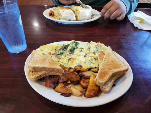 I usually order my dinner to go when I eat from here but decided to go with a few friends and have breakfast one day. The food was very reasonably priced and it was a large portion of food (more then I could finish). The entire meal with a drink and tip cost about $7.00. I was very pleased with the service. The server always passed by to make sure that everything was ok. It was a very casual atmosphere. The food was prepared quickly and was served hot. We had no complaints about the place. Dont let the other reviews sway you from going here because the food is really good and its a great place to eat. They also have some of the biggest burgers that Ive ever had and they taste amazing. I usually order them for take out and the orders have always been ready on time when I arrive to pick them up. Id recommend this place to all of my family and friends!
