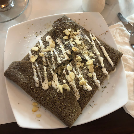 Overpriced food and poor service. I went here for brunch for the first time a few weeks ago (based on the google reviews) and my experience left much to be desired. The crepe itself wasnt too bad, but for $14 i expect more than 6 cubes of meat to be in the crepe. I most payed for alot of sauce and some veggies. To drink I decided to try a bubble tea milkshake, which came with some chunks of uncrushed ice and the flavoring didnt taste right either. When I told my server about the milkshake, she tells me its supposed to taste like that and walked off. At the very least they should have renade my drink correctly so i wouldnt have to slurp ice chunks, or offered me another beverage. All in all, I would not recommend this place.