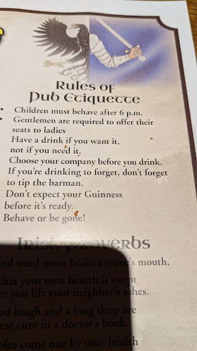 Ótimo lugar para se descontrair e conhecer! Tem uma sopa de 0,30¢ que é muito gostosa. Comida é uma delícia e o ambiente é super decorado. Ótimo para ir de galera, casal ou família. Tem música ao vivo tradicional irlandesa. E a cerveja Guiness foi a melhor de todas que já provei. Vale muito a pena!