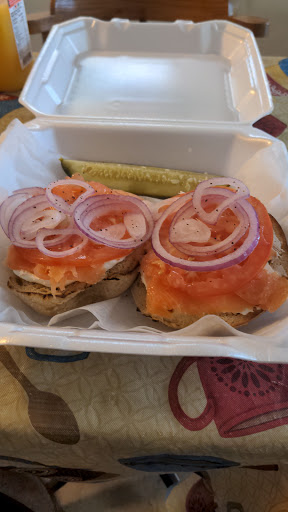 Just left after eating the BEST BAGEL IVE EVER EATEN!!! Husband (who is already ready to go back inside and get another) had the bagel and lox with a garlic bagel and i had a cheese bagel with the spinach garlic cream cheese. Bagels were homemade perfect texture and flavor. We are self proclaimed bagel connoisseurs if you will....haha and these are sooooooooo delicious. We live over an hour away and will be back regularly! Nicely done ladies! Yummmmmm