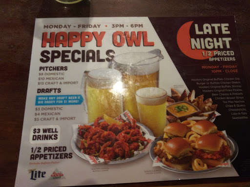Im a big fan of Hooters but this location was not top notch. We visited on a Sunday so I expected it to be pretty nice. The wings were HUGE!! This may be a preference but I dont want my wings to be abnormal. Ive been to numerous locations and this one had the largest wings Ive ever seen!!! Needless to say they werent good. While eating there was a waitress on the patio smoking a cigarette as she cleaned up. Obviously this was permitted but not professional in my opinion. Our waitress was nice but seemed new as she had to come back to question our order after taking it in full. Id find another place.