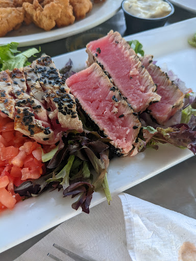 Just had a remarkable fish salad for very late lunch called the Mango Mahi. Very nutritious, great visual appeal, great fresh Mahi, tasty and great price. A foreign born woman seated next to me at the bar was beside herself with envy for ordering a chili dog after seeing it served to me. She was lusting over my lunch and grilling me with inquisitions of how it tasted etc. Free comedic entertainment opportunities in situ galore...