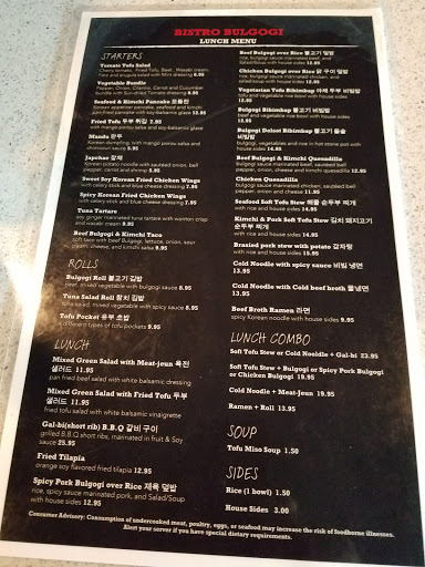 The Kimchi tasted extremely old. I couldnt even eat it (nor my bf whos actually Korean) the service was EXTREMELY slow - I came here because of the reviews but honestly, my favorite japanese place (Mikan) makes better Korean food than Bistro does lol