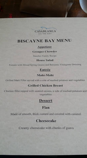 "A lot of expectations" since I am a long time customer of casablanca on the Miami river enjoying like I would say to my mind getting spoiled with warm fast service. Now i wanted to take my lady out for the frist time to casablanca on the bay and was highly recommended by my girl friends coworker and to say to mention his name so now for the frist time I am here writing a review how I was not happy with service we ask for bread and famous fish spread we thought they forgot us, tables was set up with flowers except ours and the when the fish Sandwich was served,it looks like it was put back in the oven to warm up and they forgot to take the tomatoes,lettuce,small salad and was cooked as well strangely fish was hard they offered to take it back but we were famished I was ready to walk out the door if I would have to return the plate so I had to eat!!! So I told them to replace all of salad finally the mismatch was the dining experience "WE BEEN WAITING FOR THIS ALL DAY" To realize that we for the frist time getting Groupon discount to feel better for what we did is going to wrong place trying to make my Sunday pleasant with the beautiful view that this place has to offer run the cameras laz we were sitting in the corner inside proof is in the pudding I hope you read this a beautiful place you have there but I will be back to the river were in will enjoy the service there again.