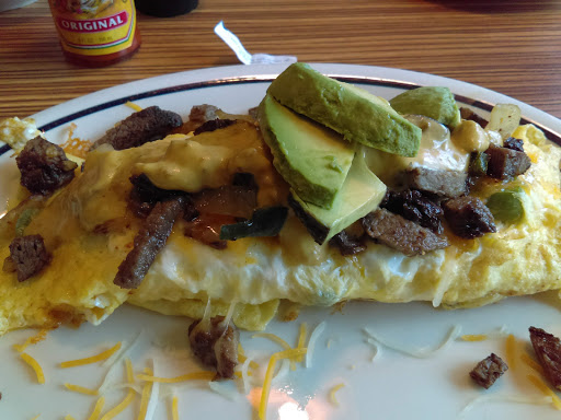 Im going to start off with some positivity. FOOD WAS DELICIOUS.. Now the negative; This location did not have a working A/C unit. My ice melted in my water cup waiting for a refill. I had the worst waitress in the business. My crepe looked like it came in a TO GO container. Dont go here unless extremely hungry and cant stand to wait at Dennys down the street.