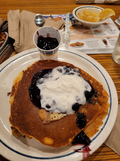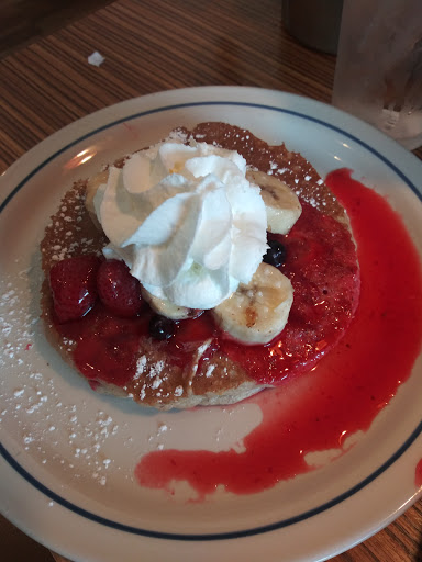 Came here on National Pancake Day and while it was crazy management was able to keep the line moving. Surprising I got seated with my friend pretty quick! Service was pretty normal like any other chain restaurant. The only thing I will say that the IHOP needs a new coat of paint and a fresh interior. Its a crime to have it looking the way it does now.