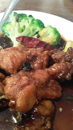 Real Chinese food. Although the taste is somewhat affected by the fact that they have to use locally available veggetables. A typical example is they have to use green pepper here, which is just have too much water in the skin. The Chinese pepper has a thinner skin and more suitable for sauteed dishes. People working there speak Cantonese. Restaurant looks beaten up which is typical for many Chinese restaurants in the US. The owners either dont have the money or more likely that they arent willing to spend money for the upkeeping of their restaurants. BTW, for any people who can read Chinese, their name is 广州酒家。There is also a Chinese grocery store in the same plaza, which also looks worn.