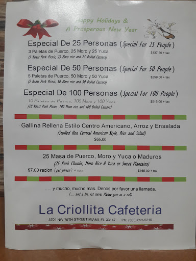 Muy buen menu cubano y economico y muy buena atención por sus propios dueños