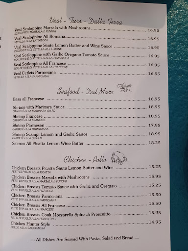 Always good. Been going here since I was very little. I guess I cant say much since I ALWAYS get the chicken Francese. Very good. Its very old and a little dusty inside, but they have good weekly deals for certain dishes. The service is always excellent. I have noticed portion sizes have gotten smaller over the years and the salad plates are becoming minuscule. The bread isnt very consistent. Its different everytime but always good.