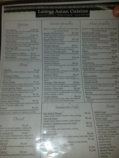 When you want to travel to a culinary paradise, you dont need to go far - thats what you experience at Lazeez - every visit reminds you of far, exotic cuisine only minutes away from anywhere in Kendall - delicious food, prepared and served by a kind and noble family