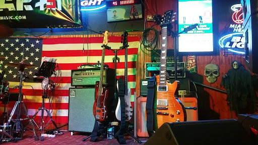I love this bar !! They have great food and drinks + cold beer . Lots of TVs and music most nights . Wednesday is Ladies night and Saturday night they have live music . The best bands in South Florida play here and Thursday is open mic night .Sundays you can watch the games or racing on one of the many TVs and grab some wings or my favorite the Prime Rib Sandwich or Fried Shrimp basket . They also have good salads & appetizers for you lighter eaters .