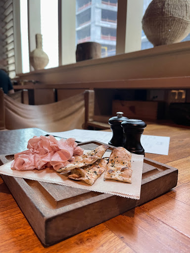 Se for a este lugar não peça carne. Todos da nossa mesa que pediram se arrependeram, intragável. Deixaram no prato. Sem gosto, ponto errado... Gostamos das pizzas aperitivos e do vinho! Bom lugar para encontrar os amigos. Estávamos em uma mesa em 10, e mesmo com restaurante vazio nos colocaram do lado de fora. Super abafado e calor. Serviço péssimo. Garçons perdidos. Tínhamos que pedir bebida várias vezes. Pelo custo, não recomendo para jantar. Somente petiscos. Comi o prato com lagostin, estava bom! Acho q um dos poucos da mesa q acertei o pedido. Salmão pedaço minúsculo, massa com cara péssima e pequena, carnes intragáveis.