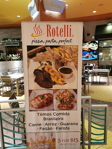 Im a pizza fan, and me and my mother came to Dolphin Mall to watch a movie and get a bite to eat. I was in the mood for pizza, and Rotelli being located on the property was a plus. Its been a while since Ive eaten at Rotellis but this experience left a bad taste in my mouth (pun intended). The first course was garlic rolls in which came without garlic but shredded cheese and some olive oil on it. When I got a hold of my waitress which was a hard thing to do as she was more interested in talking with her fellow co-workers then tending to her table, we brought to her attention the garlic less rolls. So, we mentioned to our waitress that we think the garlic was left off and she says its a mixture at the bottom. From my experience garlic rolls have actual garlic on them, and not an olive oil sauce to it. Next came the pizza which was just a cheese topping and the taste was subpar. The frozen tombstone pizza is better tasting than their fresh cheese pizza. That is not an exaggeration. I had to add marinara sauce to make it taste good. My mothers calzone was good except she said it had more onions than meat. The greatest part of our Rotelli experience was the Fanta orange soda—it tasted great, and the 20% coupon they offered, but the worst part was the tip being automatically included on a 2 person party in which is normally reserved for an 8-person party. A $33 bill including tip was not worth the bad tasting, lack tasting food we were served. I remember when Rottelli first came out in Kendall about 8-9 years ago the pizza was great, the service was prompt, and each meal came with unlimited garlic rolls that were actually garlic rolls. I hope this truthful unbiased review helps you. God bless.
