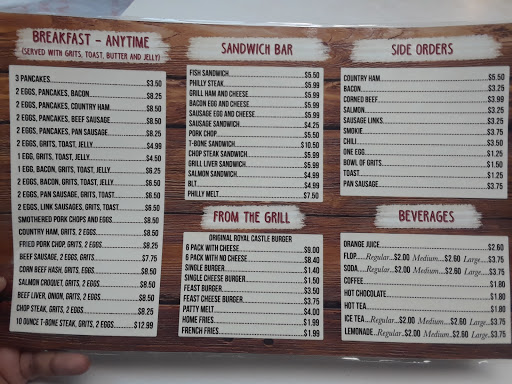 The menu is very, very misleading. THE price for 6 castle burgers and fries and soda isnt on the menu and the cashier isnt honest and forthcoming with the pricing. They need to be trained to inform the customer of any and every extra charges that isnt on the menu.
