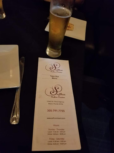 Saffron offers what I would say is decent "fast food" Indian cuisine. The biggest mistake an Indian kitchen can make is to not cook the meat in its sauce and to instead add precooked meat to the sauce after the sauce is prepared. This is a lazy method of cooking Indian food and is leaves you with flavorless meat in a not very flavorful sauce. Their takeout portions are adequate for the high price of their entrees ($16 and up). The naan was undercooked ($3 and up).