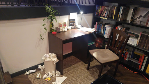 Nice coffee place and book store. They also offer a nice menu with some good choices for lunch. I tried the chicken and it was really good.