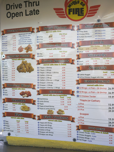 Fast food service seafood chicken vegetables deserts drinks pick up and call in orders no sitting drive thru or walk ups only