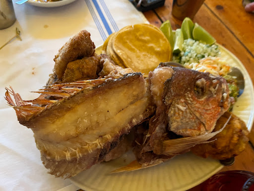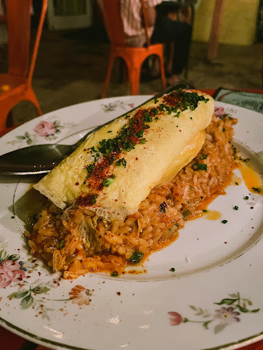 Went here for dinner. The food is quite good but I found it to be pretty expensive for what you get. As soon as we sat down we were offered bottled water in a way that made it seem like it was the only option. The fish tacos were pretty salty and ended up costing 65 dollars, as the price was not disclosed on the menu. I found the service to be overly intrusive. It seemed like every five minutes someone was checking our cups and looking to clear our plates. And it was not that busy. The staff acted like it was a privilege to eat here. That being said my cocktail was amazing. Bottom line, if you have money to spend, go here for good but well overpriced food (though definitely not amazing by my standards) and outstanding ambiance. Otherwise Id stick to the bar upstairs for drinks (and happy hour) or go to the bar next door outside at the hostel for the same ambiance.