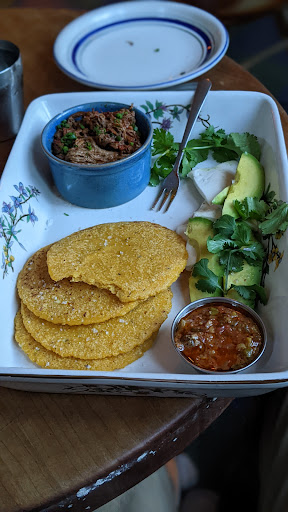SUNDAY BRUNCH REVIEW. What we ate: GRILLED WATERMELON SALAD: Delicious, served on arugula with feta cheese and sweet onions and a light lemon dressing. Recommended. DEVILED EGGS: $9 for 3 egg halves. Not worth it. BRISKET: Excellent. Served with potato salad. FRIED CHICKEN: Served with eggs, biscuits and a spicy sweet sauce. Good. Not as good as Yardbird, but very good. COCONUT COLD COFFEE DRINK: (Thats not exactly the name, but youll know it when you see it.) Highly recommended. A little bit strong, but delicious and an unexpected mix of flavors. The bill came to about $80 for two, which included the automatic 18% tip. Decor: This restaurant is part of the Freehand Miami hostel, and shares space with Broken Shaker. All great places! Walk through the hostel front door, the past the community board listing local daily activities, through the back door, past the pool. When you see a set of outdoor tables, bang a right and go into the cozy house. Youll see a hostess stand at the end. Since they open at 11 am, you can get a seat quickly if you show up right around that time. Very cute inside, with a New Orleans meets Venice Beach feel. Great place to bring your Warby Parker-wearing, ascot-sporting friends who think Miami doesnt have quirky places. Relaxed vibe but with class. TL;DR: Go!