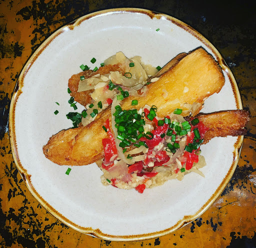 The Freehands restaurant is located in a historic 1930s house directly adjacent to the hostel—also designed by Roman & Williams, the interior has a colorful, beachy vibe complete with picnic tables, bright pink and green shelving, blue-and-white wallpaper, and tables lit with Virgin Mary candles. The menu is a hodge-podge of cuisines thats illustrative of Miamis melting pot, incorporating Caribbean, South American, and Middle Eastern foods in dishes like cheese bread made with cassava flour, banana fosters pancakes with Appleton rum, or arepas with ropa vieja and queso de mano. Dont leave without ordering one of their tiki-bar-inspired drinks, which are served with a garnish of orchids, plastic sunglasses, and upside-down nips of rum.
