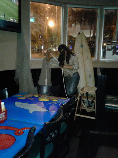 Id love to come back to this place in a year or two and find its found its way again. Some people have put some cool things in here - distinctive tiki statues, colorful fish painted on tables... but the lighting is horrible - as if theyre trying to hide something - overall feel is depressing. Maybe if there were a live band in the corner, it could have a cool dive bar vibe going, but its just kind of blah as it is. The server (was she also the cook?) was fine. Seemed undertrained as to representing the venue. Food took a while to come out and the lettuce seemed fresh, but there were grumblings about the tomatoes not tasting great. Its as if someone had some ideas for a decent place and then life became interrupted. It wouldnt take much to create a place people might be psyched to discover, but Id go here only if really hungry as it is now. Or it might make a good place for a nightcap?