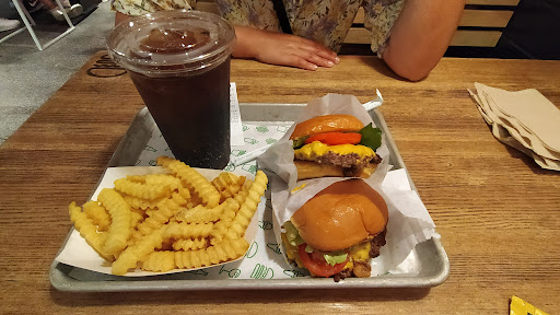 Nice place to chill for lunch the fries are very tasty you have regular and sweet potato with sea salt the wait can take a minute but ensure fresh quality the burgers are good but not sloppy good they are just not raving mad good. But if you like the super burger with egg n ham try Venezia pizza its cheaper n tastier but if you want to say you had burger n shakes then cool go4 it, but try Venezia on 65th. And compare!