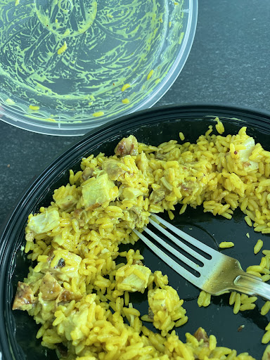 The best grilled chicken and yellow rice But the curry sauce is awesome
