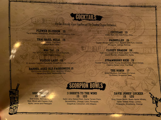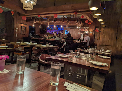 Considering its location in a nondescript strip mall, you could walk right by the Drunken Dragon without knowing it was there—look for the "MARKET" sign to guide you into the space, which deceptively offers lofty ceilings, a long, dramatic bar, and sleek wooden midcentury chairs. Food here (the menu is helmed by The Dutch, Nobu, and Zuma alum Xavier Torres) is served Korean barbecue-style, so while youll order a few sides for the table (the bok choy is a crowd pleaser), the main event is really a plate of raw cuts of meat that guests grill themselves over specially designed flames at the center of the table. The drink menu is appropriately dramatic, focusing on Tiki-style rum cocktails, and you can enjoy them well into the evening, as the restaurant stays open until 6am on weekends.