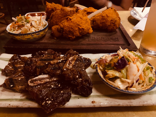 If you didnt already know about the Drunken Dragon from a friend or online review, you would more than likely pass right by it every day and never think twice about the location. I love how the plain exterior is such a stark contrast to the beautifully decorated interior. Whomever decorated that restaurant paid attention to every nook and cranny! We didnt make reservations for dinner, so we werent seated at one of the tables where you can cook your own meat. However, that didnt negatively affect our experience that night. We ordered the Peking Bao, Skirt Steak, Short Rib, D&D Fries, Lobster Roll, and the Tuna Tataki Pizza. The Peking Bao was OUT OF THIS WORLD! The dough was so fluffy and the duck was tender and juicy. I wish we had ordered two of the D&D Fries--they were the awesome shoestring fries that had just enough heat that left you begging for more. I wasnt a huge fan of the Short Rib because the meat was really tough, but the Skirt Steak was really tender and tasty. I definitely plan on visiting again to try out more menu items. Next time Ill know to make reservations for one of the tables where you can cook your own meat!