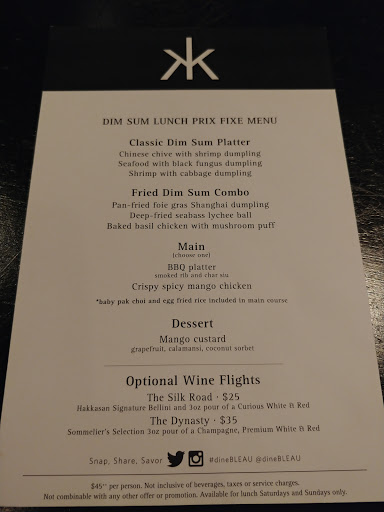 We have decided to dine here on recommendation of a friend. He suggested we try the Dim Sum brunch, but we opted for a late evening meal (with Dim Sum as starters) instead. The food is delicious and presented in a very appetizing manner. The restaurant is on the pricier side and the portions are sized so that you can try out multiple dishes. The music is a tad bit loud, so I wouldnt bring someone here on the first date, (unless of course intentionally ;) ), but this adds to the atmosphere which we enjoy very much. Finally, the cocktails are excellent and the atmosphere at the bar much better than downstairs in the lobby ("Bleau"-Bar).
