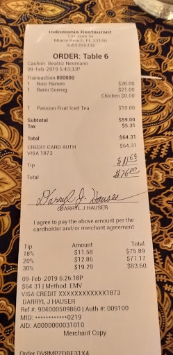 i have been at indomania restaurant a couple of time, it is always an amzing experience, food, service, atmosphere, really an indonesian restaurant in Miami great place delicious food awesome restaurant