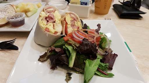 I would gave it excellent if i took the delicious chicken panini and Almond Cream Croissant to go, but unfortunately we had to deal with that rude waitress. First she doesnt understand or speak English, she got us our food without plates only in basket, when we asked her (using signs language) for plates, she got us one tiny small plastic plate only and when we told her that we dont need it , she got us 2 plates and throw them very rudely to our table. What really surprised me that manager was sitting behind us and he didnt even made a comment!!!