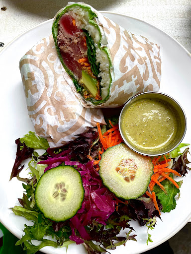 I really love this restaurant because they have a lot of vegan and healthy options. The portions are a decent size as well. Its not often that you go to a health food place in find a good assortment of desserts. All the why didnt order its, they offered a vegan carrot cake which I will go back and try the next time I go. I ate the vegetarian wrap and it satisfied me, the sauce they put on it is really good. I also ordered there split pea soup before my rap and it was the perfect mix. Its in a trendy location in Miami Beach in a section called the south of fifth period although a bit pricey, Im definitely going back.