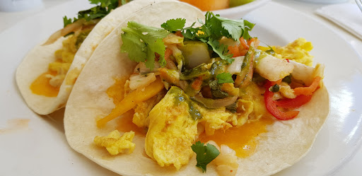 At the front of the Z Ocean Hotel, the Front Porch Cafe was a pretty good breakfast spot. With good indoor/outdoor seating options and a pretty broad breakfast menu, my whole family found good items. Our son had the scrambled eggs and fruit cup off the kids menu. It was a lot of food for a kids dish -- at least three eggs, he couldnt finish it. It also came with nice toast. Our daughter had the challah french toast, also served with fruit. She couldnt finish it either, getting through just over one piece (out of three) and eating some of our sons eggs. She ate the fresh fruit right up. My wife customized the ham & cheese croissant, adding eggs. It was HUGE. She couldnt finish it. She also enjoyed her fruit cup. I had the regular breakfast burrito, adding sausage to it and removing the cheese. It was very good. Lots of sausage and mushrooms, with a nice pico de gallo (a bit wet though). The lettuce under the burrito (unnecessary decoration) was unwashed, and had dirt on it, kind of gross. The fruit cup, again, was delicious, and I devoured it. The service was a bit slow, but par for the course in Florida. Location is decently clean, great bathrooms, although in the hotel, so a bit away from the restaurant. Across the street is an awesome park, and lots of fun stuff to walk around and see afterwards. Wouldnt travel for Front Porch, but if youre in the neighborhood. (travelers note; most of the other weekday breakfast options we could find were either IHOP or Dennys, neither of which we would go to so options are limited. For that reason Front Porch gets a 4 star instead of 3 star rating)