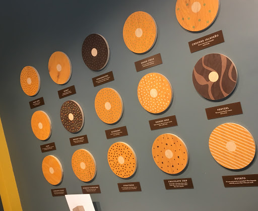 Variety of bagels and endless toppings on the bagels. However this place only had 2 one person bathrooms. Other than that fairly good spot.
