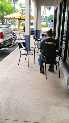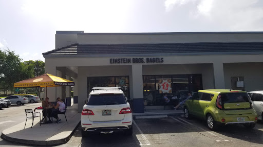 Ive been to a lot of Einsteins around Dade and Broward for the last 6 years and this is still my fav! Their bagels are bigger than others (Supposedly there is a standard but I swear by this).....The employees are genuinely friendly(which is a rarity) and the managers know the regulars by name....Contrary to a previous review the place is relatively clean and the coffee is good! I definitely recommended it!