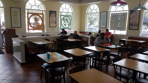 Conveniently located. Plenty of parking. Clean and bright. Really good fast food, although I found the menu a bit confusing. Food was hot and delicious, and the sauce station and condiments were plentiful and fresh. Fully handicap-accessible, although sidewalk cutout was a little tricky.