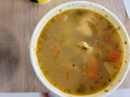 I ordered a large carribean soup, it was all juice two small pieces of chicken (hard to chew) a few pieces of vegetables and rest was liquid. Taste was not bad. I also had a tres leches (the bomb) always good and fresh.