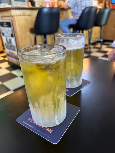 Great hamburger cooked to order and good fries. Small bar atmosphere with a NASCAR ambiance. Good people, friendly and interested in your satisfaction.