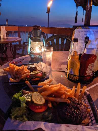We live just across the lake from Tiki Bar so this is a regular spot for us to tie off the boat and come in for a cold drink and some food while out on the weekends Dont expect gourmet food here! Its burgers, fish sandwiches and wings.. they dont have a full liquor license either so its just beer and wine, but we love the place for its view and friendly atmosphere. The service is ok, it really depends on the mood of the server that day! lol We really enjoy the food though, its always hot and fresh
