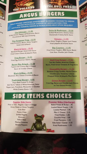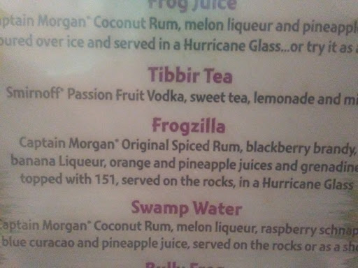 Just the facts: I ordered Friday Night Special $12.95 - "All You Can Eat Seafood." Fried shrimp - fried fish - peel and eat shrimp. What arrived after 20 minutes was 7 medium over fried shrimp and one medium baked potato on a platter. I immediately ordered that the fish be brought. I quickly finished the 7 shrimp and potato to wait 10 minutes on the two fish sticks that arrived. I asked that another order of shrimp be brought. I finished the fish sticks to wait another 10 minutes for the second order of 4 butterfly fried shrimp. I asked that the third order be started. Finishing fried shrimp #11, we, (wife and I) waited another 10 minutes and the order had not arrived. We got up and went to pay and leave. Asked if there was a problem, I replied 15 shrimp in 45 minutes is not acceptable for an all you can eat special. The cook explained that due to people over ordering and leaving uneaten food on the AUCE specials, corporate implemented the policy of serving 4 shrimp at a time. Handing out 4 shrimp every quarter hour is patronizing and cheap. The decor: Bright yellow walls painted with cartoon frogs, ponds, and signage gives a decidedly day care feel to the place. Add in a painted concrete floor that the staff can hose down each night, and the effect is complete. Plus the combination is as nosy as a 747 jet engine. The drinks: We hold the opinion that the bartenders (two women about 21 years old) googled the drink recipes for a pomegranate martini, which did not taste like one, and a poor rum runner. The bar: Dark, nosy, ESPN on all channels tuned to base ball except one tuned to World Cup. The wait staff: Plentiful, knowledgeable, friendly, and not that attentive to empty drink glasses. The uniform of the wait staff is very low front cut tee shirts showing more cleavage than a Hooter girl. ( The servers name on the ticket is: "Double D". The response of the staff to our complaints was defensive and did not offer to adjust the bill or offer any discount on the next visit. It was a Friday night, however, over half the tables were empty. Cook times should have been faster, and wait staff more attentive. If you are passing through Mt. Dora, do not stop here expecting good food, good drinks, and attentive wait staff. Rather go to downtown Mt. Dora for several boutique type bars and restaurants, or go to Chillis. About us: We both have long history in food service work and know about the behind the counter operations. We do not eat in the chain establishments when traveling and thought Froggers was an independently owned place.