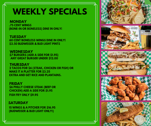 Very very poor wings. Everyone got sick, including myself. The girls and their friends had the wings and were throwing up and were on the toilet, within 20 minutes of getting straight home from there. I was the same as the girls as far as sickness and did not have any wings. This told us that the kitchen and perhaps the drinking glasses, silverware etc. could additionally be the culprit. It could be bad bacteria within the food. Again, it could be a myriad of all. Next time we ever get sick from an establishment my husband reminded us we are going straight to the ER so that samples are taken then off to the lab. Followed up with our attorney. Enough is enough. Additionally, put at least one REAL ADULT in charge. The place appears to be staffed from the local high school via tattoo parlor. Dont worry, we will never return.