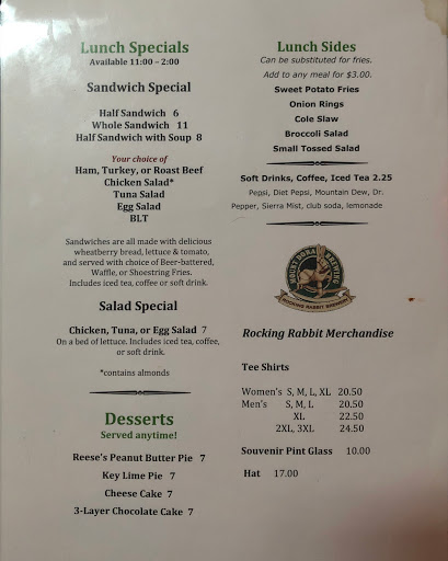 Wow what a great lunch we had! The grilled cheese sandwich is amazing! We also had the Rocking Rabbit Red Ale which was soooo very good. Cannot wait to go back! Oh make sure to ask for the chip dip!